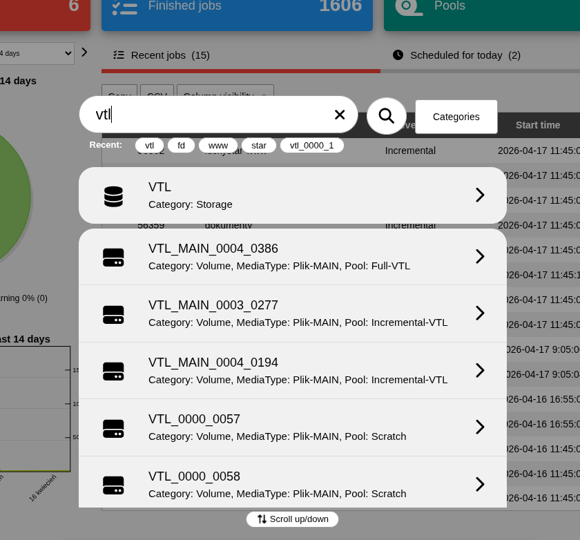 Storage - searches Bacula storage resources